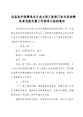 XX县医疗保障局关于成立职工医保门诊共济保障改革风险处置工作领导小组的通知.docx