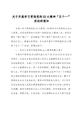 关于开展学习贯彻党的XX大精神“五个一”活动的通知.docx
