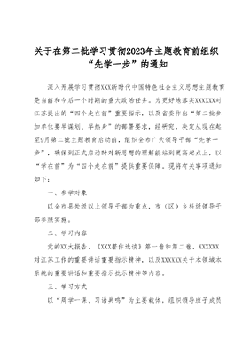 关于在第二批学习贯彻2023年主题教育前组织“先学一步” 的通知.docx