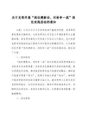 关于支部开展“岗位建新功、对标争一流”岗位实践活动的通知.docx