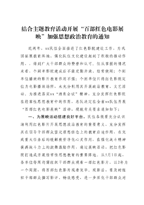 结合主题教育活动开展“百部红色电影展映”加强思想政治教育的通知.docx