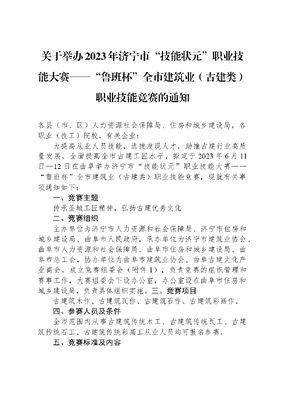 关于举办2023年济宁市“技能状元”职业技能大赛——“鲁班杯”全市建筑业(古建类)职业技能竞赛的通知.docx