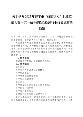 关于举办2023年济宁市“技能状元”职业技能大赛—第一届全市检验检测行业技能竞赛的通知.docx