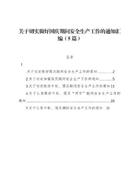(5篇)关于切实做好国庆期间安全生产工作的通知汇编.docx