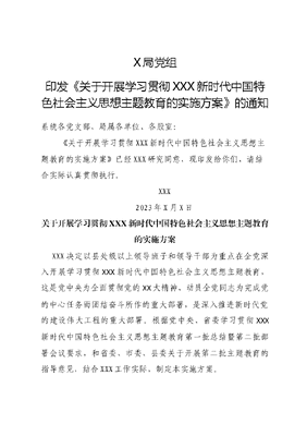 X县x局党组印发《关于开展学习贯彻习近平新时代中国特色社会主义思想主题教育的实施方案》的通知.doc
