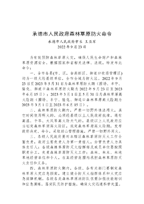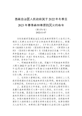 西藏自治区人民政府关于2022年冬季至2023年春季森林草原防灭火的命令.docx