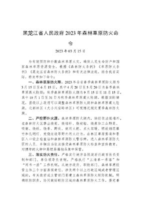 黑龙江省人民政府2023年森林草原防火命令.docx