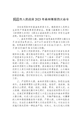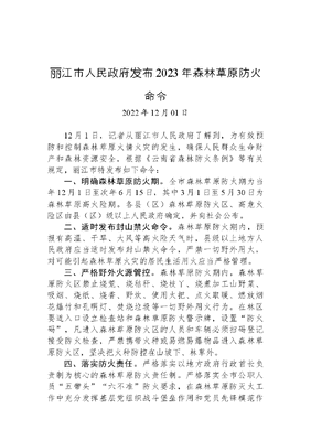 丽江市人民政府发布2023年森林草原防火命令.docx