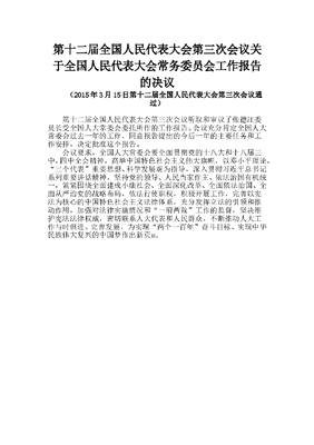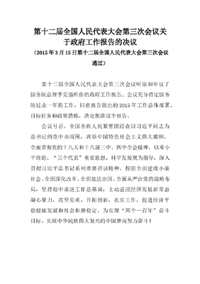 第十二届全国人民代表大会第三次会议关于政府工作报告的决议.doc