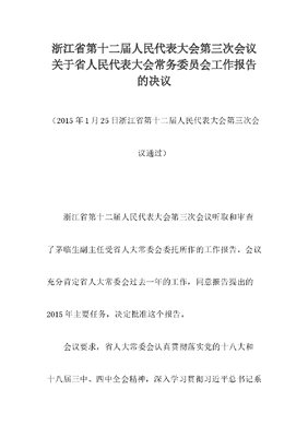 浙江省第十二届人民代表大会第三次会议关于省人民代表大会常务委员会工作报告的决议.doc