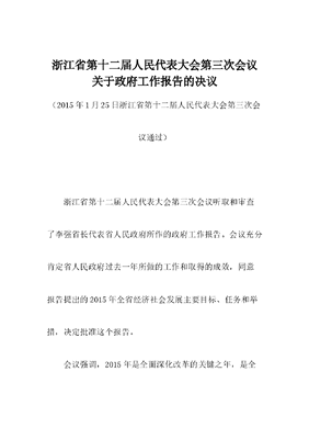 浙江省第十二届人民代表大会第三次会议关于政府工作报告的决议.doc