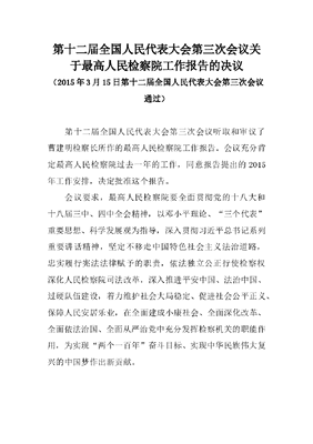 第十二届全国人民代表大会第三次会议关于最高人民检察院工作报告的决议.doc