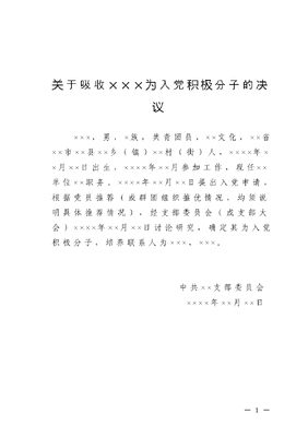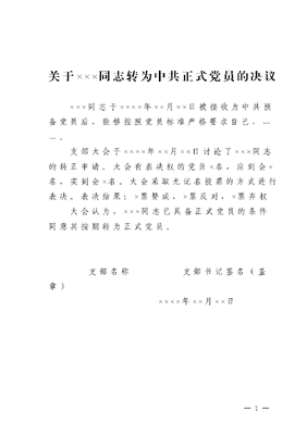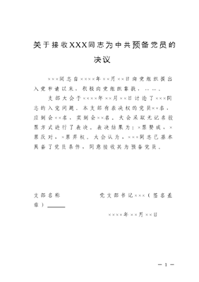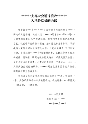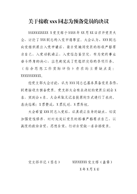 xxx支部大会通过接收xxx为预备党员的决议.doc