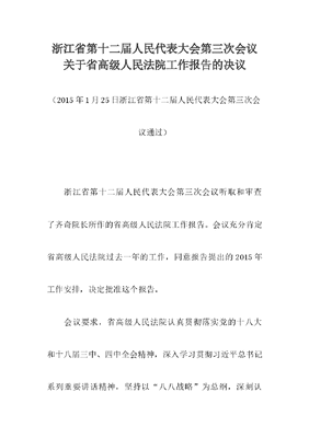浙江省第十二届人民代表大会第三次会议关于省高级人民法院工作报告的决议.doc