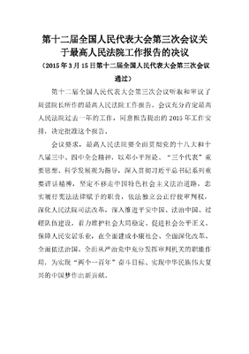 第十二届全国人民代表大会第三次会议关于最高人民法院工作报告的决议.doc
