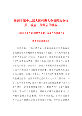 陕西省第十二届人民代表大会第四次会议关于政府工作报告的决议.doc