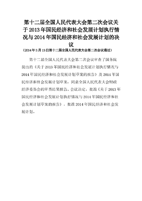 第十二届全国人民代表大会第二次会议关于2013年国民经济和社会发展计划执行情况与2014年国民经济和社会发展计划的决议.doc