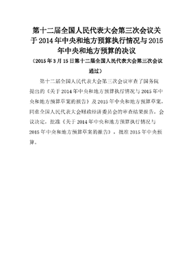 第十二届全国人民代表大会第三次会议关于2014年中央和地方预算执行情况与2015年中央和地方预算的决议.doc