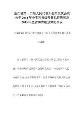浙江省第十二届人民代表大会第三次会议关于2014年全省和省级预算执行情况及2015年全省和省级预算的决议.doc