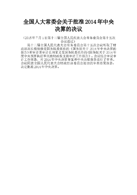 全国人大常委会关于批准2014年中央决算的决议.doc