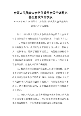 全国人民代表大会常务委员会关于调整完善生育政策的决议.doc