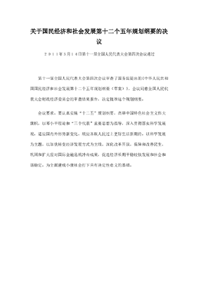 关于国民经济和社会发展第十二个五年规划纲要的决议.doc