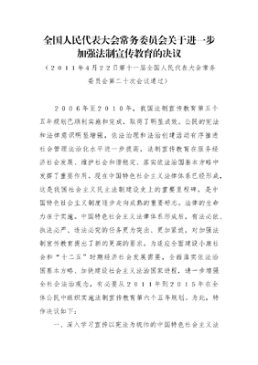 全国人民代表大会常务委员会关于进一步加强法制宣传教育的决议.doc