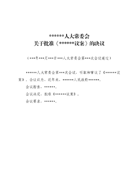 xxx人大常委会关于批准《xxx议案》的决议.doc