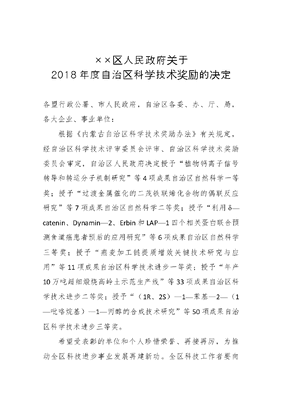 ××区人民政府关于2018年度自治区科学技术奖励的决定.docx