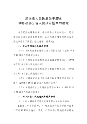 2018年湖南省人民政府关于废止和修改部分省人民政府规章的决定.docx