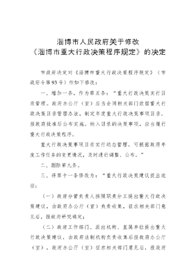 2018年淄博市人民政府关于修改《淄博市重大行政决策程序规定》的决定.docx