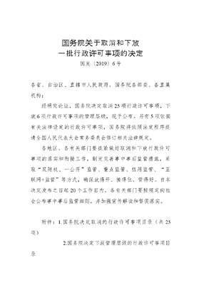 国务院关于取消和下放一批行政许可事项的决定.docx