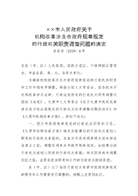 ××市人民政府关于机构改革涉及市政府规章规定的行政机关职责调整问题的决定.docx