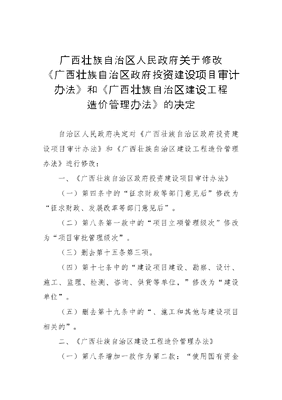 2018年广西壮族自治区人民政府关于修改《广西壮族自治区政府投资建设项目审计办法》和《广西壮族自治区建设工程造价管理办法》的决定.docx