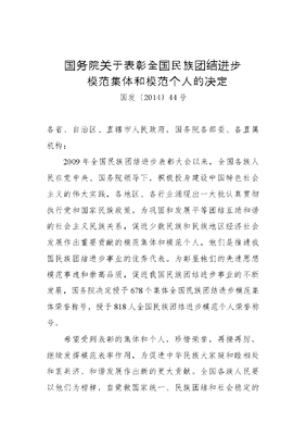 国务院关于表彰全国民族团结进步模范集体和模范个人的决定.docx