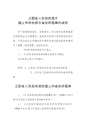 2018年江苏省人民政府关于废止和修改部分省政府规章的决定.docx