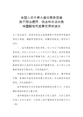 全国人民代表大会常务委员会关于惩治虚开、伪造和非法出售增值税专用发票犯罪的决定.docx