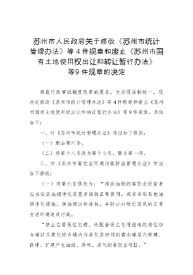 2018年苏州市人民政府关于修改《苏州市统计管理办法》等4件规章和废止《苏州市国有土地使用权出让和转让暂行办法》等-9件规章的决定.docx