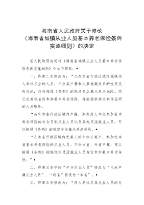 2018年海南省人民政府关于修改《海南省城镇从业人员基本养老保险条例实施细则》的决定.docx
