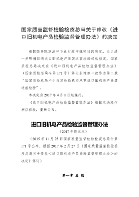 2018年国家质量监督检验检疫总局关于修改《进口旧机电产品检验监督管理办法》的决定.docx