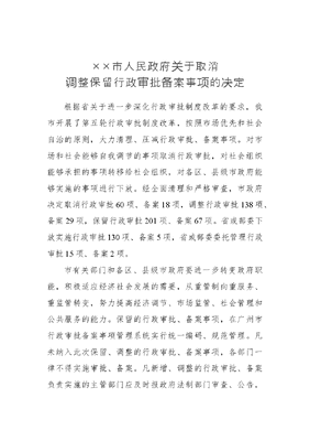 ××市人民政府关于取消调整保留行政审批备案事项的决定.docx