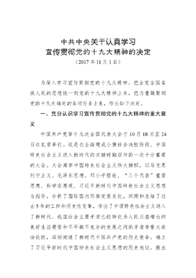 中共中央关于认真学习宣传贯彻党的十九大精神的决定.docx