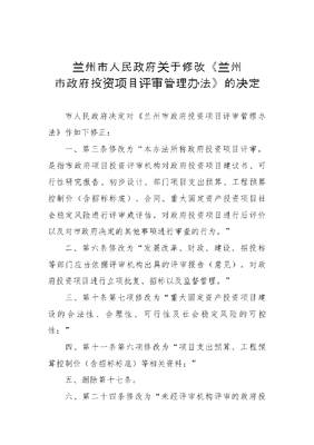 2018年兰州市人民政府关于修改《兰州市政府投资项目评审管理办法》的决定.docx
