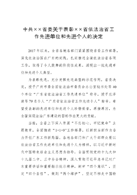 中共××省委关于表彰××省依法治省工作先进单位和先进个人的决定.docx