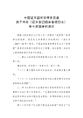 2018年中国证券监督管理委员会关于修改《证券登记结算管理办法》等七部规章的决定.docx