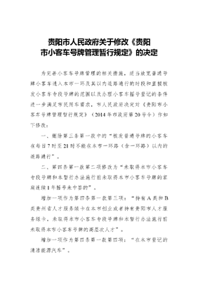 2018年贵阳市人民政府关于修改《贵阳市小客车号牌管理暂行规定》的决定.docx