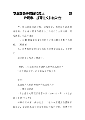 2018年农业部关于修改和废止部分规章、规范性文件的决定.docx