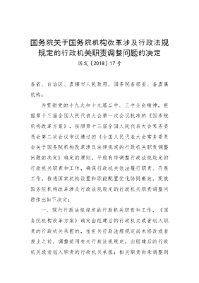 国务院关于国务院机构改革涉及行政法规规定的行政机关职责调整问题的决定.docx