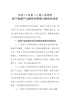 中共××省委 ××省人民政府关于推进产业转移和劳动力转移的决定.docx