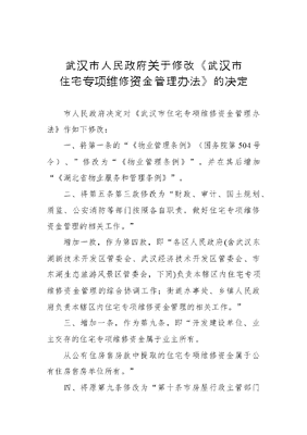2018年武汉市人民政府关于修改《武汉市住宅专项维修资金管理办法》的决定.docx